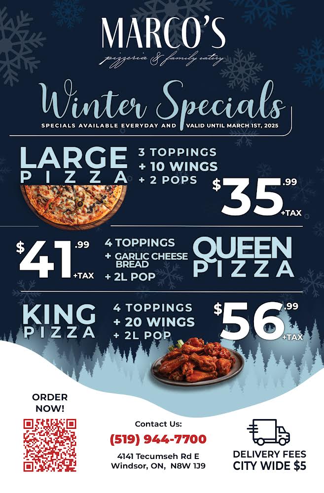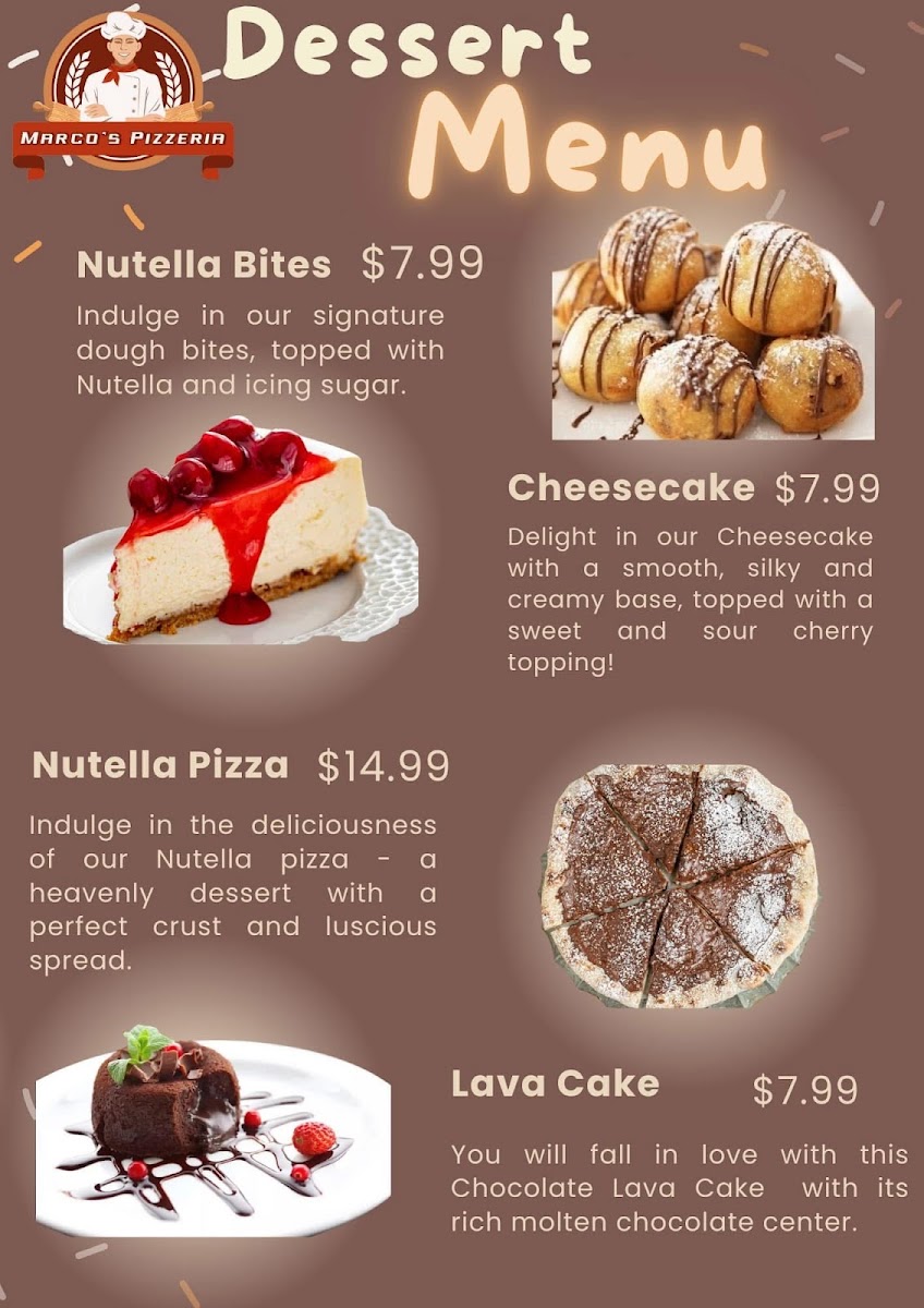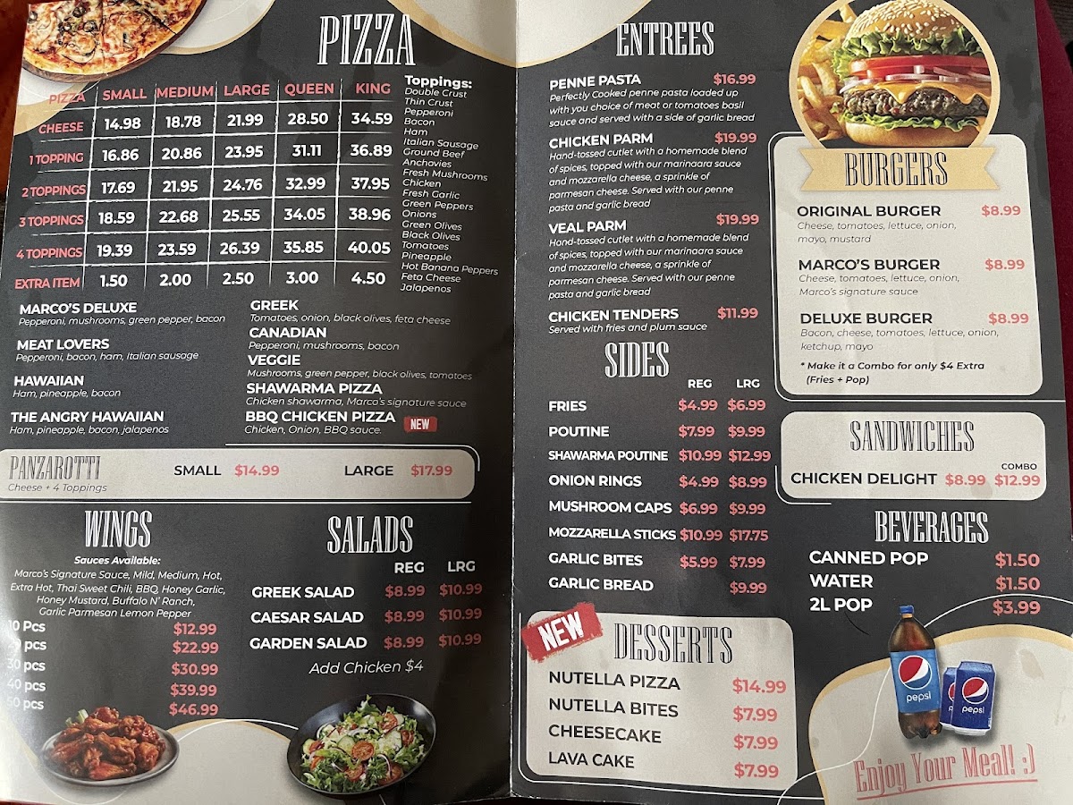 Cheese, tomatoes, lettuce, onion, Marco's signature sauce.
